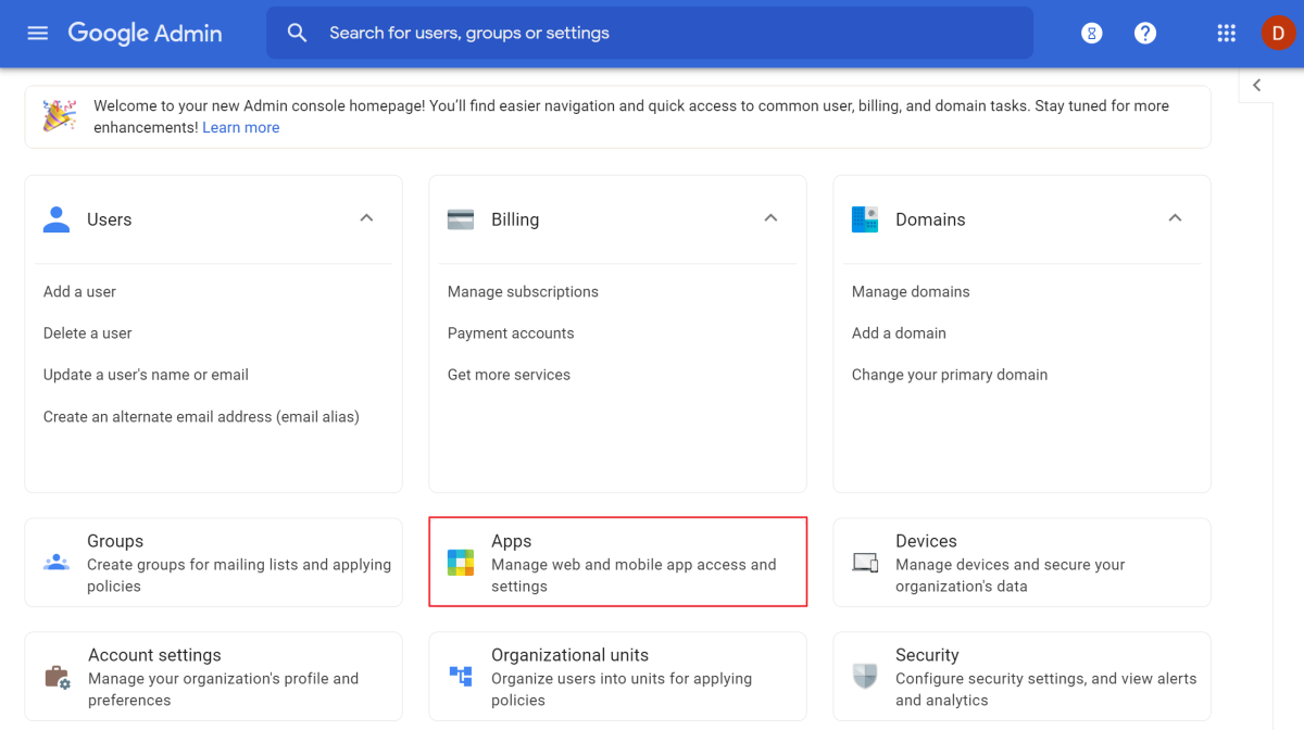 - 앱 > Google Workspace로 이동합니다.
